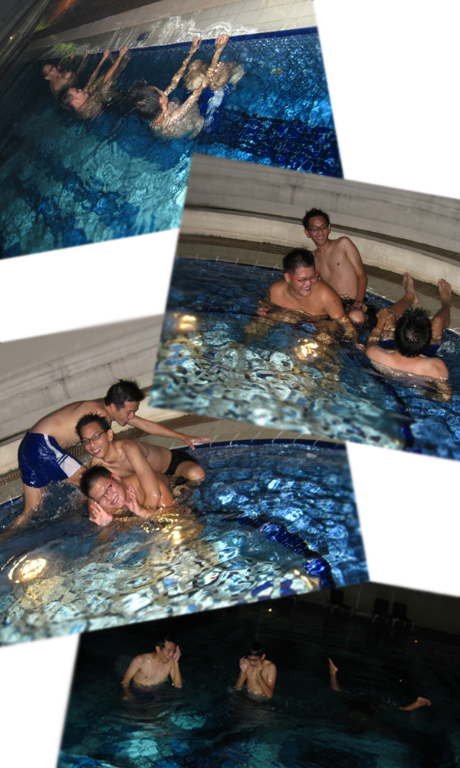 eric , chia en and weeleng changed and off they went to swim , the pool was just beside the BBQ pit .. very convenient !
